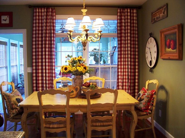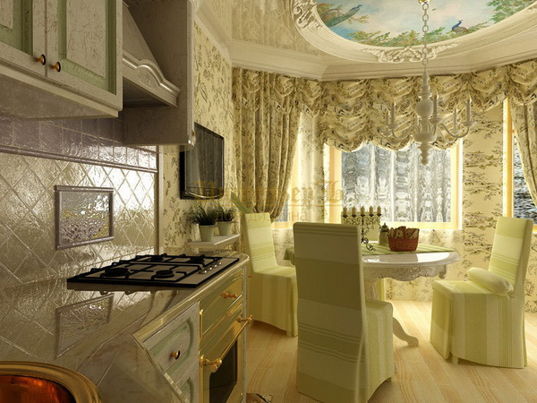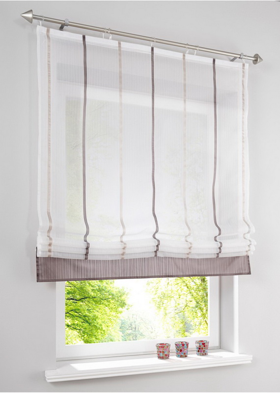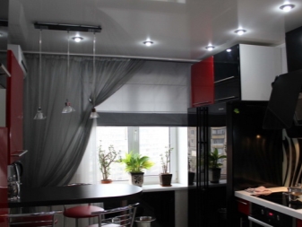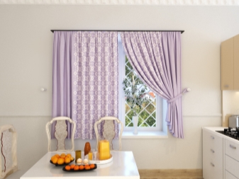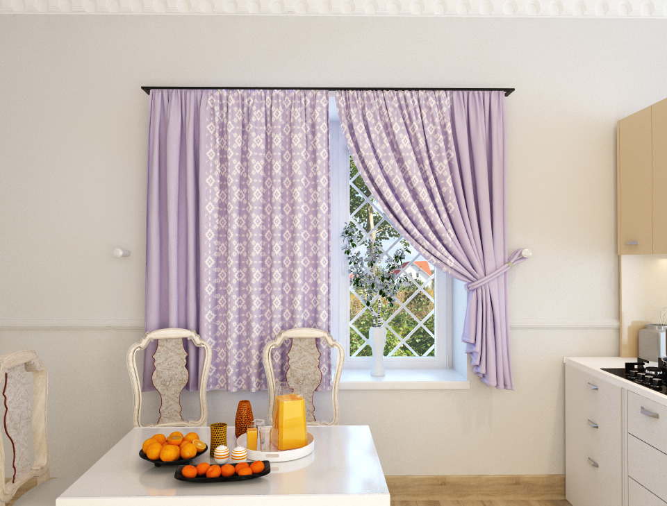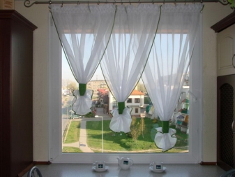 In the kitchen, curtains should be tailored from a fabric that tolerates frequent washing, so delicate natural fabrics are not the best choice. Synthetic lightweight fabrics that do not require ironing - this is what is suitable for kitchen windows. There are fabrics impregnated with a special compound that prevents ignition, which is very important in the kitchen. The length of the kitchen curtains is chosen depending on the size of the room, but the most common option is light, with a small number of folds curtain to the window sill or to the radiator, which is fixed on the sides of the magnetic holders. Since the kitchen is often ventilated, there is no need to hang tulle here, making it difficult to breath.