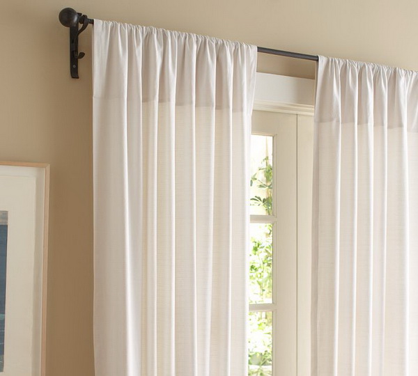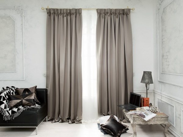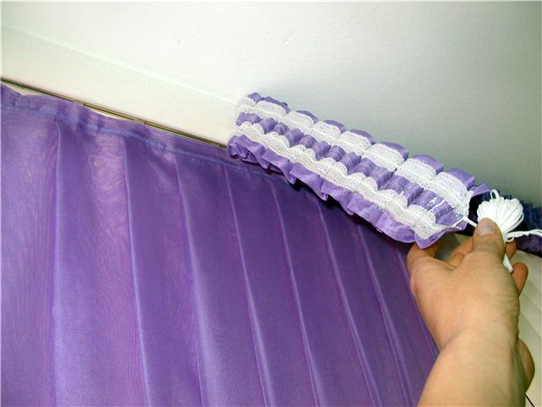 Another option for fastening curtains without the use of accessories is a “drawstring” that completely hides the rod or bar. If the fabric is light enough, then such a curtain can be collected in beautiful folds.