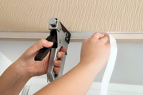 A very simple and convenient way to fasten the curtains with Velcro. Self-adhesive velcro can withstand a sufficiently large load, durable, allows you to easily attach the curtains to the rod or bar. Such a mount can be decorated with a nice decor. However, this method is suitable for curtains that will not move apart, so it is better to use it for lambrequins.