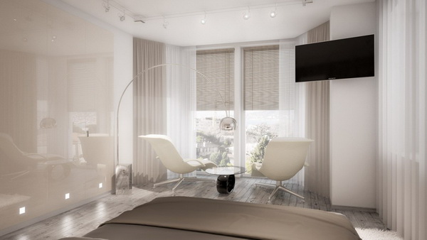 If the room is decorated in the style of Minimalism or in a business style, then the round metal cornice and cornice-string, on which translucent light curtains are placed, would be quite appropriate.