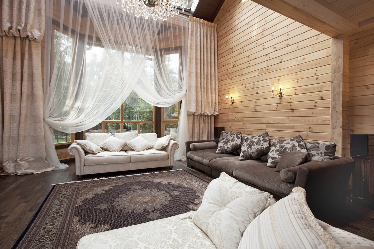 The richest possibilities for curtain design are in the hall or in the living room, where the windows are wide enough to accommodate not only classic curtains, but also unusually tailored lambrequins, cascades and garlands. It is advantageous to combine heavy and light fabrics, achieving the effect of monumentality or, conversely, airiness and dynamism. In the bedroom you should hang thick curtains that will drown out the light of street lamps at night and protect from the bright light in the morning. In a small room, the curtains can be replaced with Roman or roller blinds, which successfully perform the same function without taking up much space. Lace or tulle curtains will protect the room from prying eyes without obscuring it.