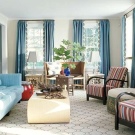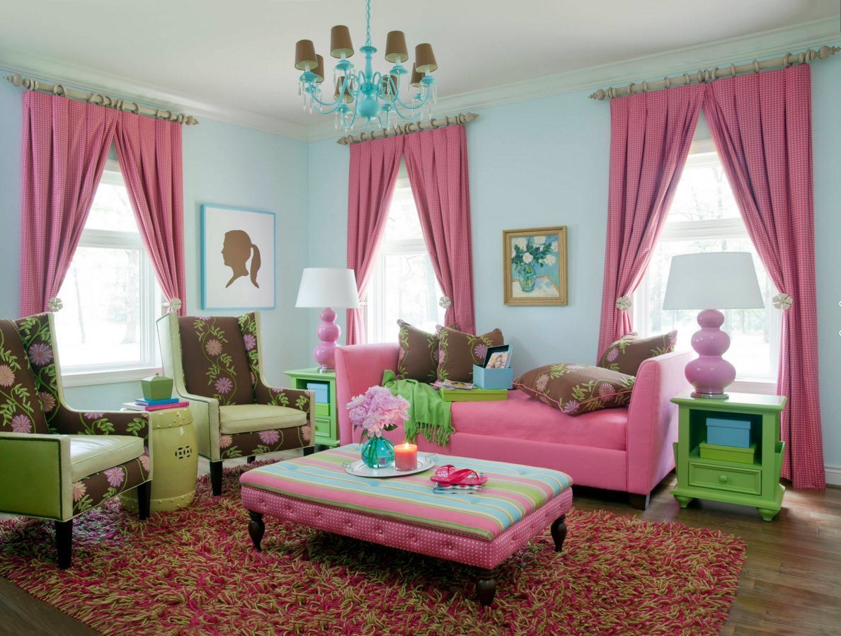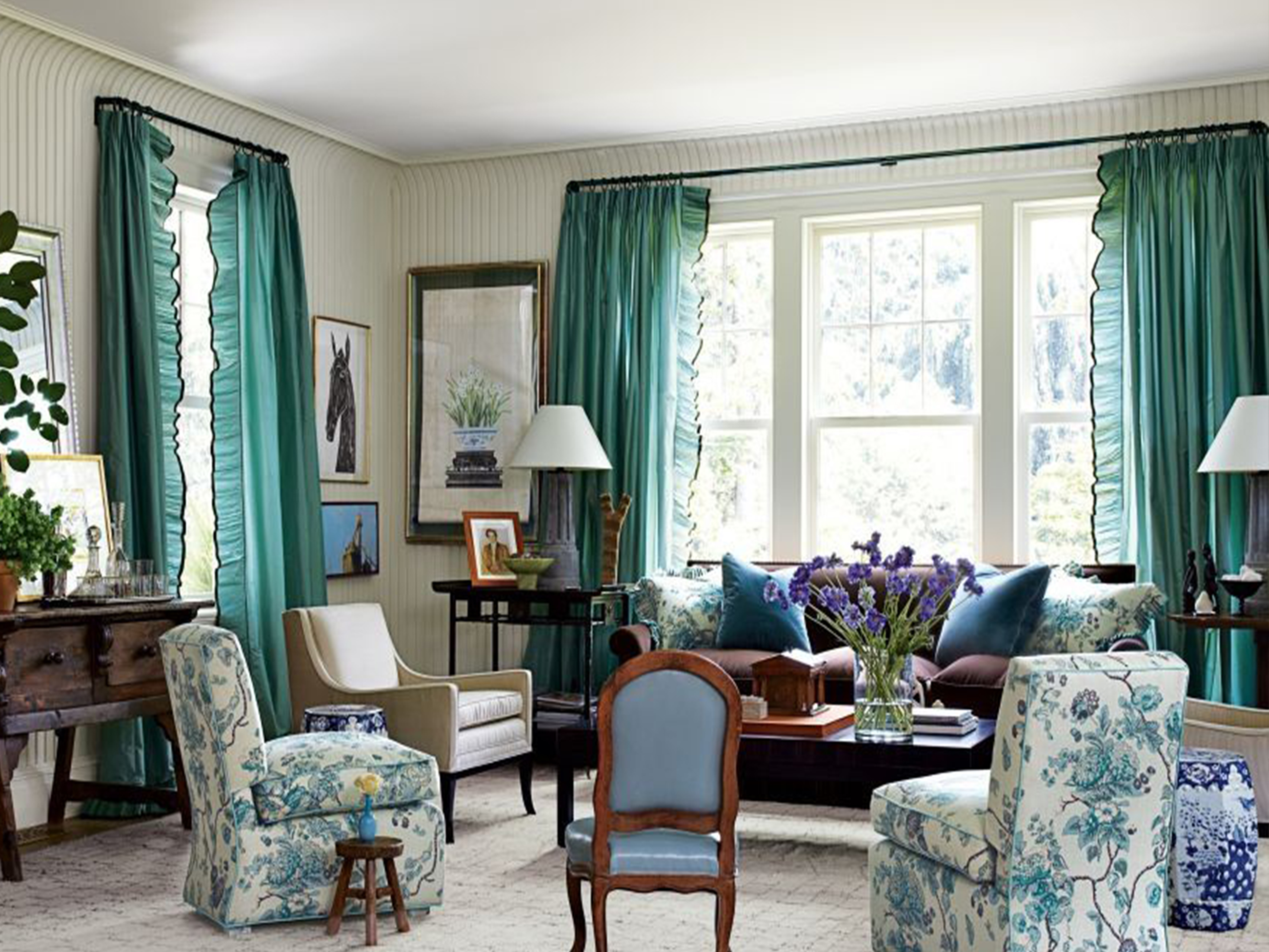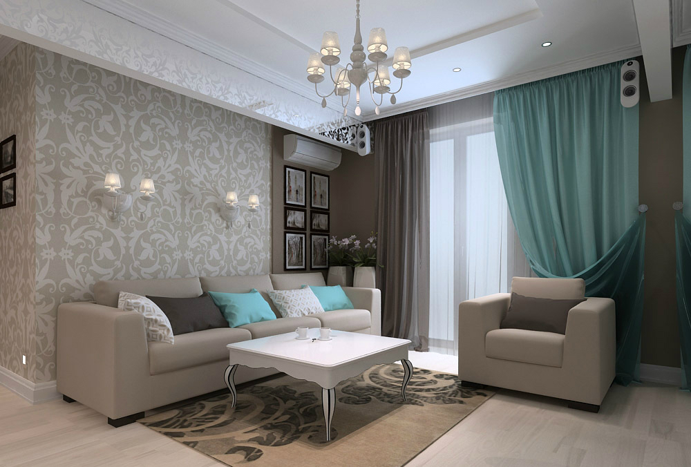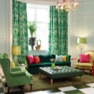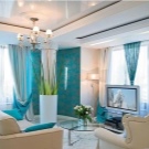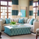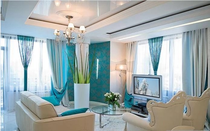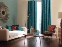 Similar colors are always used in the interior as a color spot, so turquoise curtains should be the only big bright accent in the room. Otherwise, there is a chance to overload the interior and, instead of adding a fresh note, to introduce excessive brightness and alyapistosti.