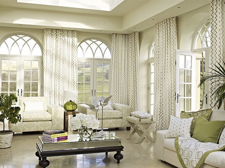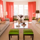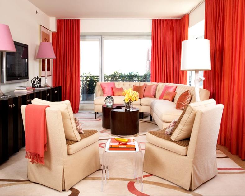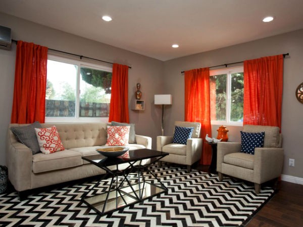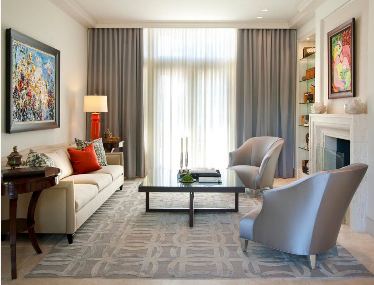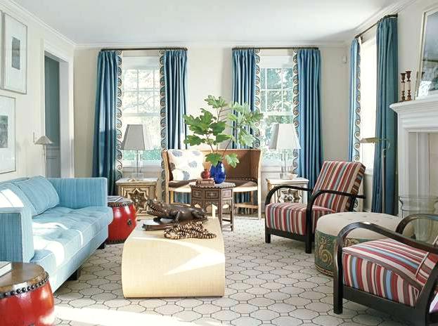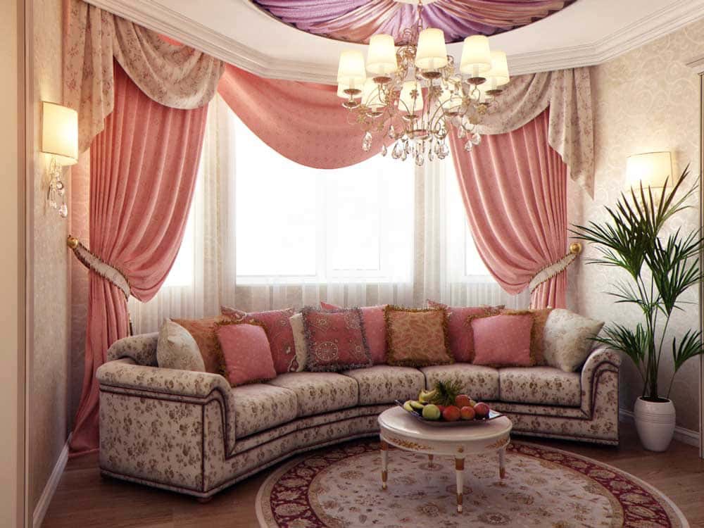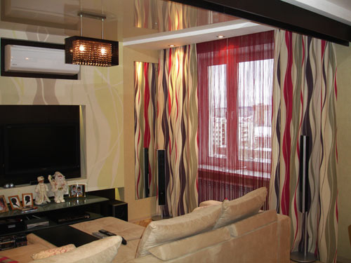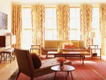 Try to pay attention to the curtains that will overlap with other elements of the room. For example, when choosing active curtains, make sure that they match the shade or print to the sofa or cushions that decorate it. However, it cannot be that there are too many identical active elements, otherwise the room will look overloaded.