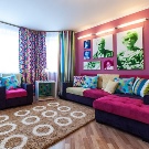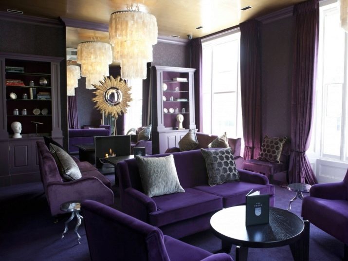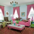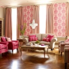 Modern interiors can include delicate subtle shades of purple. Lilac, pearl and pale lilac colors will make any living room soft and comfortable. Pistachio and sweet pink and peach shades will give the hall more airiness. In a bright and soft atmosphere it will be very nice to receive guests and arrange family tea.