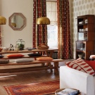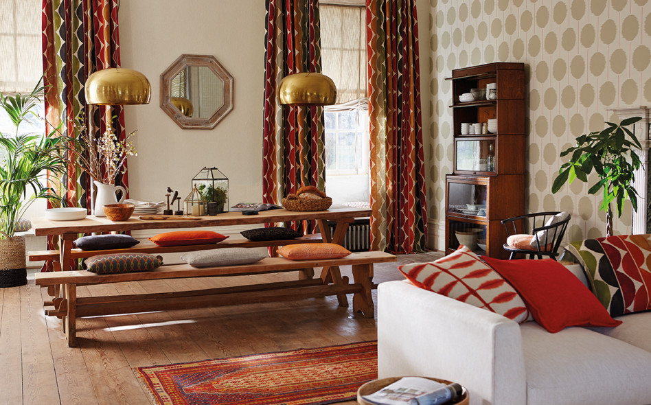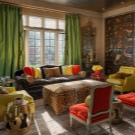 But do not think that the brightness of this season is not welcome. On the contrary, fashion does not prohibit bright color details. The main thing is that the color used is deep, noble and slightly muffled. Screaming shades should not be. Emerald, chocolate, mustard, blue and orange colors are in fashion. The interior may well appear curtains with red trim.