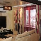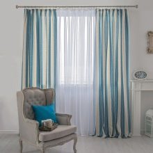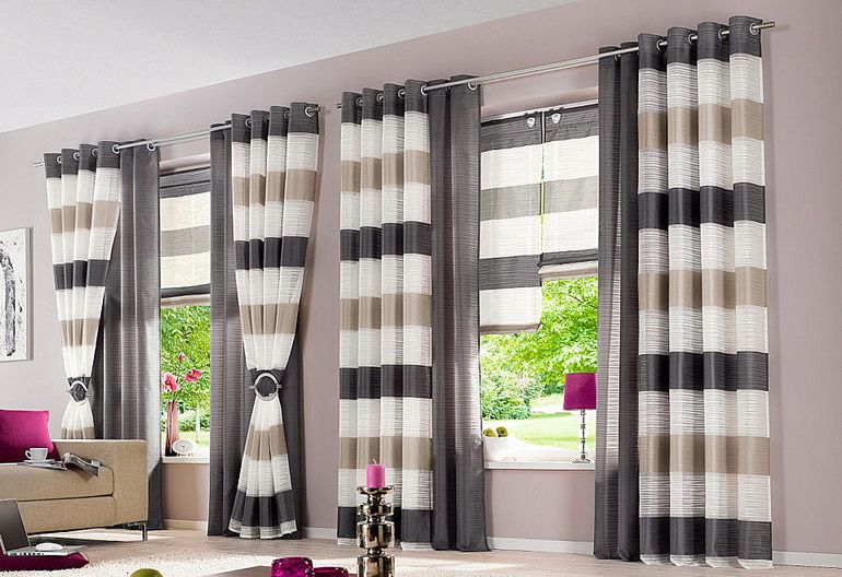 If the choice fell on the striped curtainsthen the owners of small apartments are better to focus on the curtains of light translucent fabrics. It is possible to use a thin vertical strip - it will stretch the room in length.Or you can take curtains with a wide horizontal stripe, which will expand the space in width, but due to the lightness and transparency of the fabric will not weigh down the window.