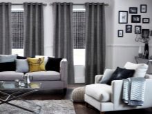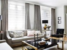 Curtains can be used not only on the windows, there are more unusual solutions. For example, curtains can be placed along the wall as a continuation of the window. They can also be placed on the door or above the arch. The most interesting option is to use curtains to zoning a room. With their help, you can separate the working and guest areas, which is very convenient for a small studio apartment.Stylish and bright enough for such restrained colors look interiors in gray tones.