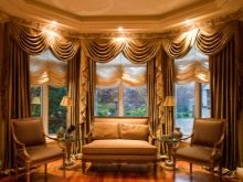 - Classics require heavier fabrics and normal proportions. It is desirable to use clear lines and shapes. Do not be afraid of a certain rigor in the interior - it is now popular. But it is better to forget about excessively curvaceous curtains. They will not decorate a large room, but for a small one they will seem too bulky.