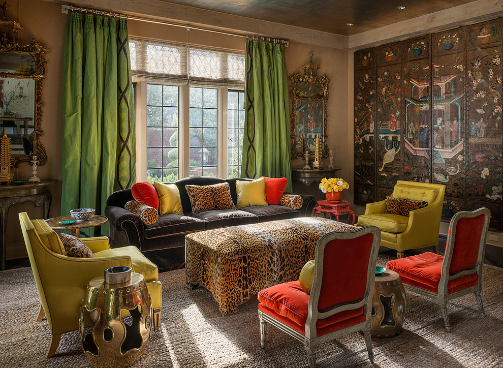 But for ethnic and African styles, bright colors with a warm undertone and animal print will come to the fore. Asymmetrical clothed models and patterns of curtains suitable for living rooms in the style of Modern or High-Tech