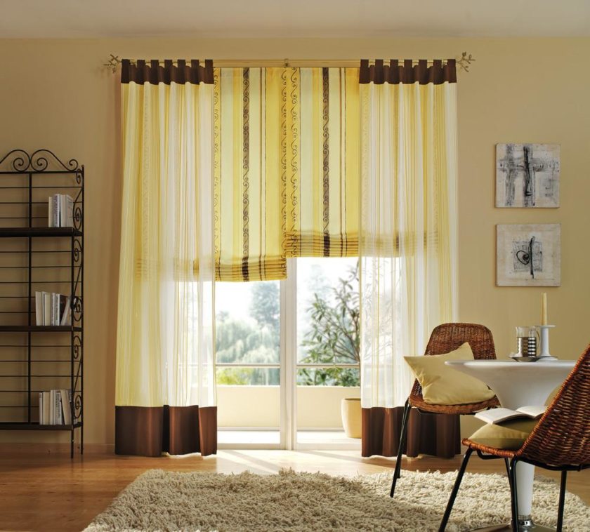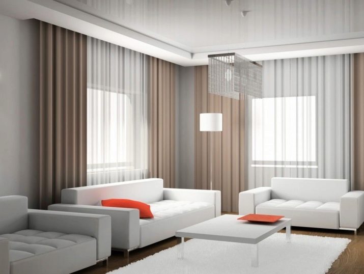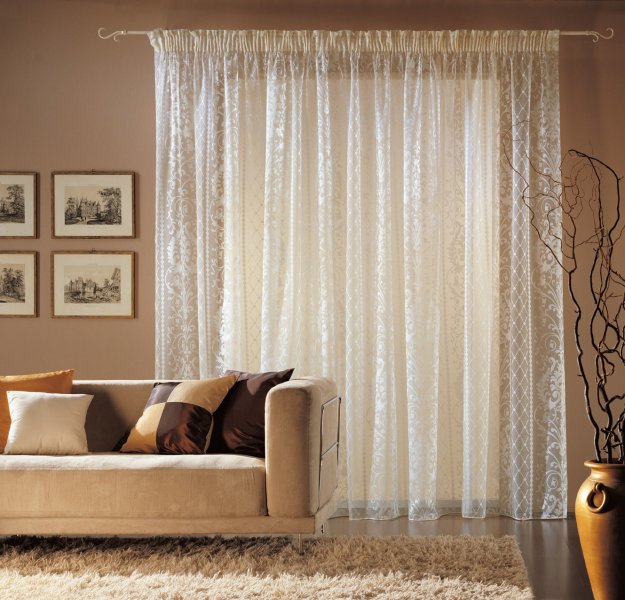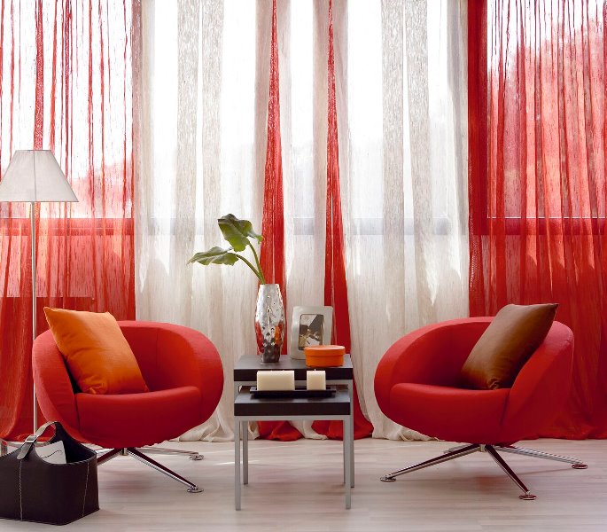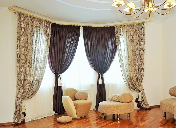 Design tips are usually based on the ratio of curtains and features of the room. For example, for large rooms should use curtains of dense material, which is able to give the interior texture. Such curtains can be attached to the curtain with massive rings. For living rooms in a modern style, it will look fresh and harmonious.