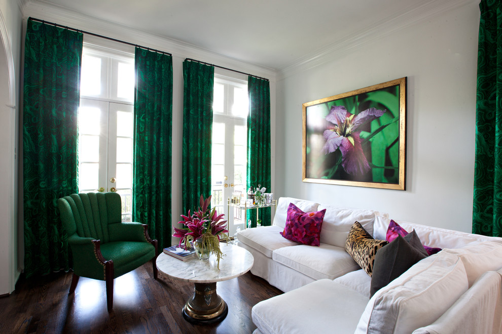 Such elements will dilute the design of the room and give it a zest. All shades of green are welcome, ranging from muted pastels and ending with marsh.