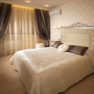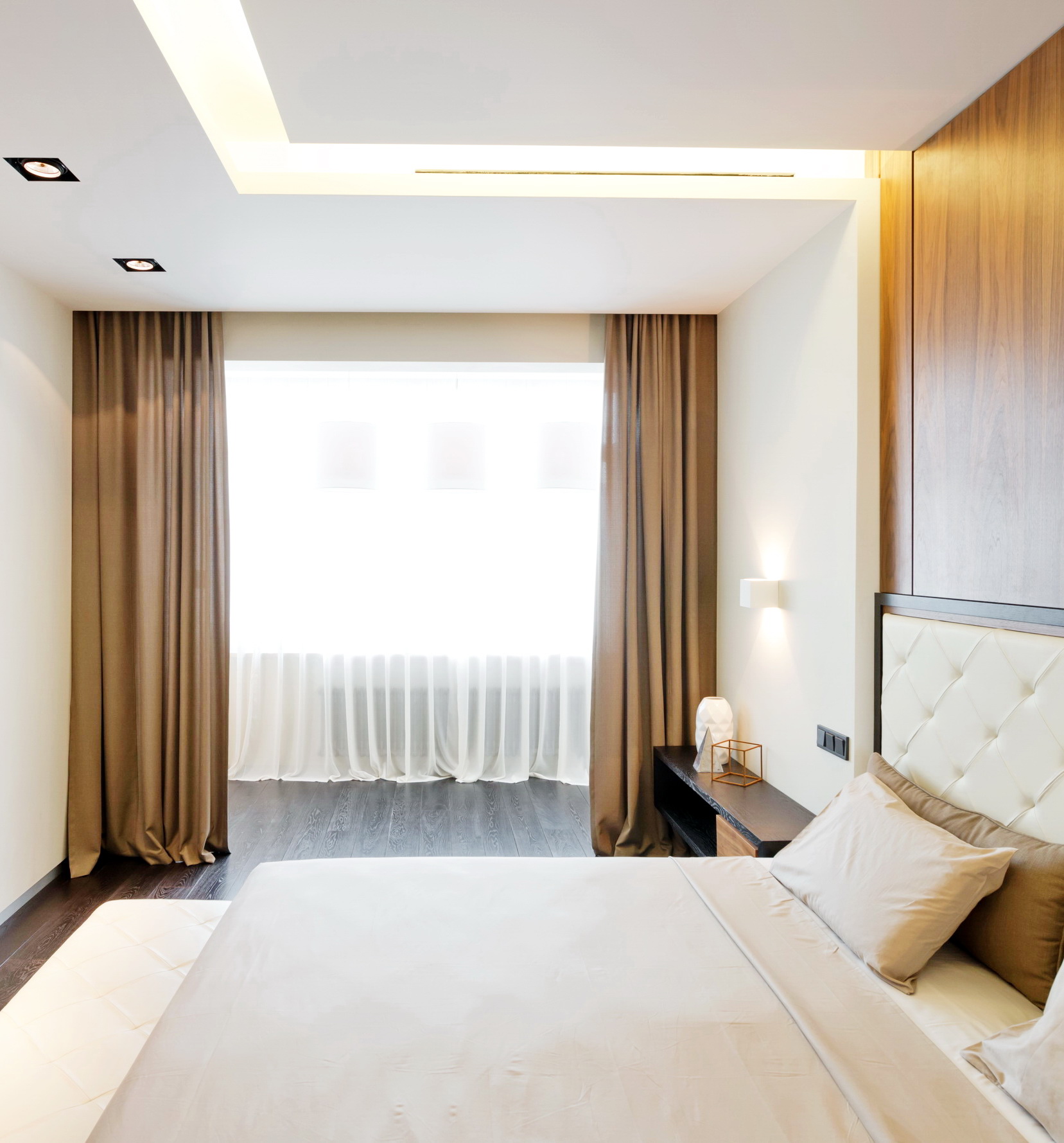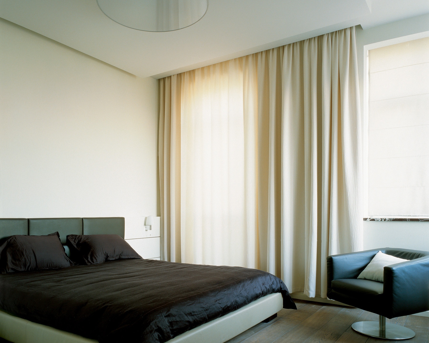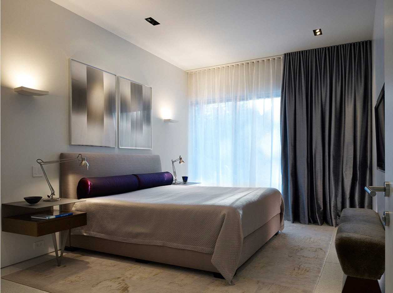 - A small footage will visually expand if the curtains are in tone with the finish of the bedroom;
