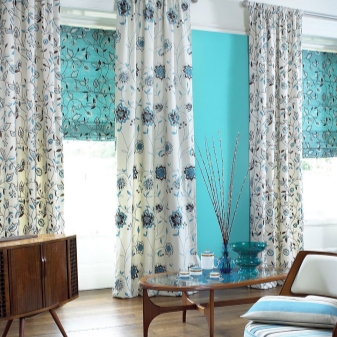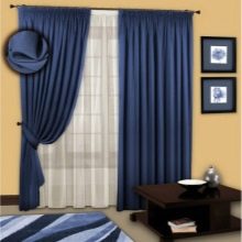 In this case, double curtain rods are used, on which thick curtains are attached complete with a curtain. But if there is a magnificent panorama outside the window, you should not hide it behind the thick drapery. It is better to “dress” the window in tulle, so that the airy fabric does not hide all the beauty behind the glass. This also applies to panoramic windows. They are not taken to block heavy tissue. Fabric blinds are permissible in bright sunlight, but in the vicinity of weightless curtains of a veil or tulle.