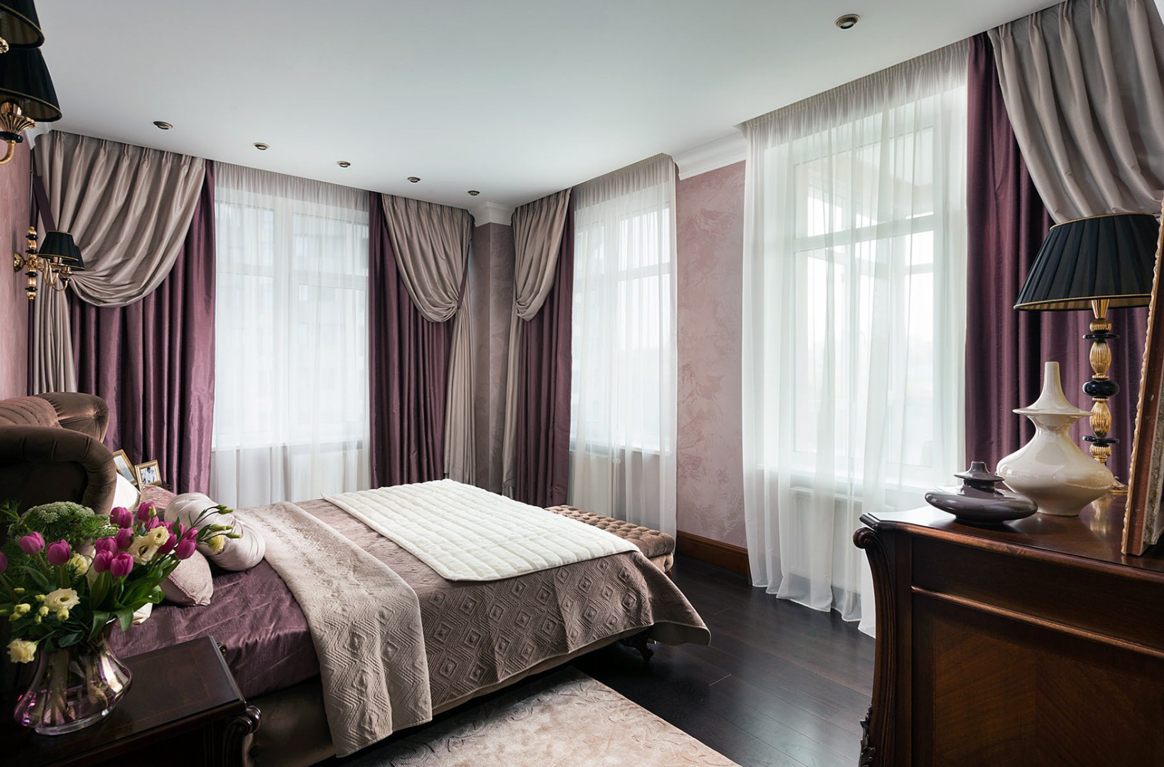 An important criterion for choosing bedroom curtains is the interior style. Each specific design performance is characterized by a characteristic type of curtain.