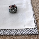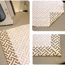 - The horizontal geometric pattern visually expands the space, and the vertical elongates;
