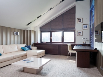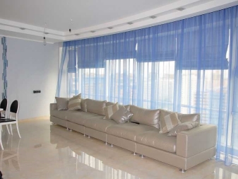 For recreation areas, the design of the curtains is selected based on the lighting and the type of room. In living rooms, color and texture solutions for furniture, finishing materials and curtains should be combined.