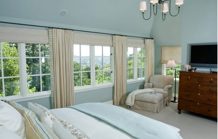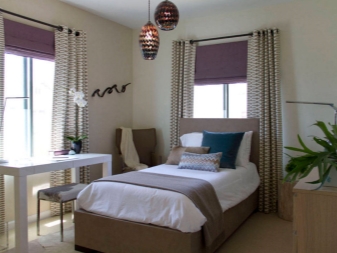 It is not recommended to choose bright colors for the bedroom, it is better to give preference to soft and calm colors. They will help create a comfortable zone for relaxation and sleep. Window decoration can be combined not only with pieces of furniture, but also with other textiles, for example, in plaid or pillows matched to curtains, harmoniously fit into the style of any interior.