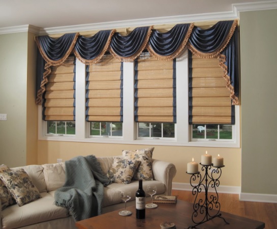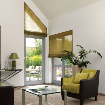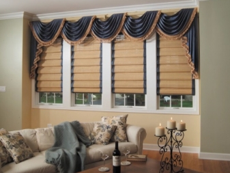 Dimensional window openings should be curtained with Roman curtains with mechanized lifting mechanisms, otherwise it will be rather difficult to adjust the position of the canvas.