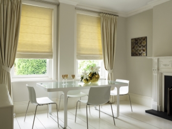 Roman curtains for the kitchen are selected based on such properties as the resistance of the fabric to dirt, the ability to absorb odors and ease of cleaning. For the kitchen and dining area design should choose easy to use and care model.