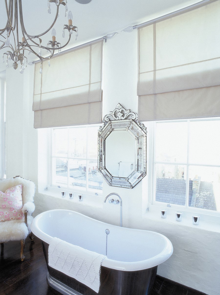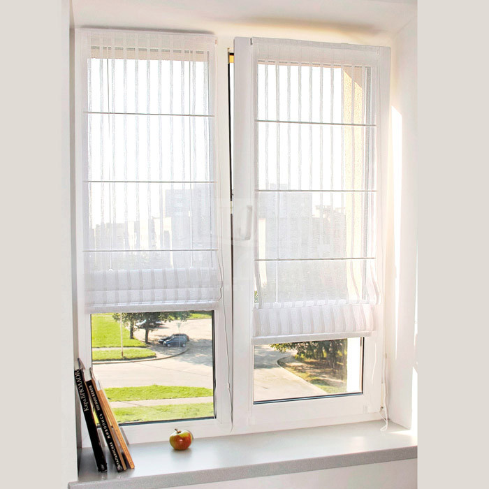 The owner of double curtains can either completely open the window or curtain it with a thick cloth or light curtain. Double Roman blinds are also perfect for the bathroom, if you choose models made of moisture-resistant and light-proof materials.