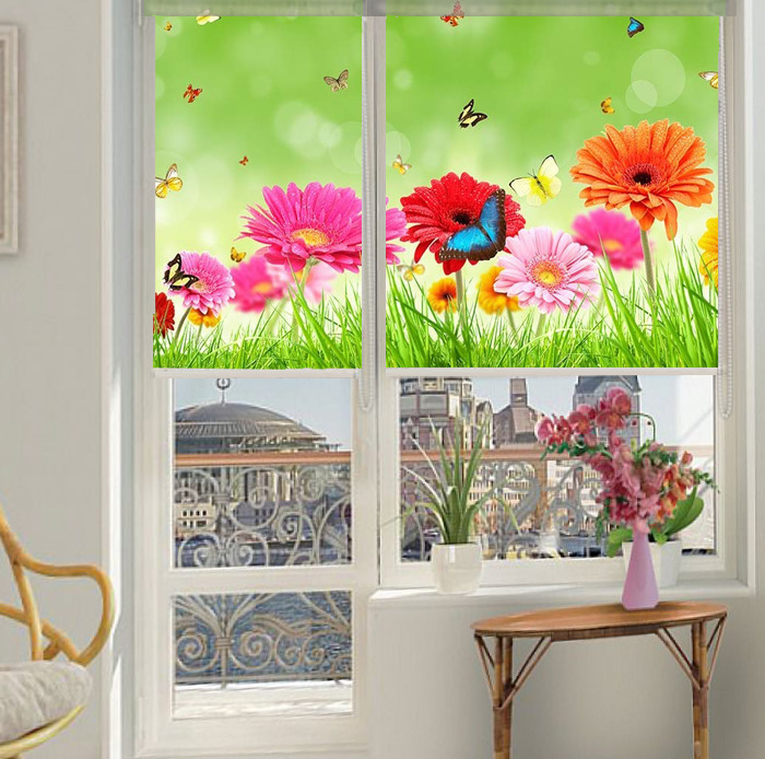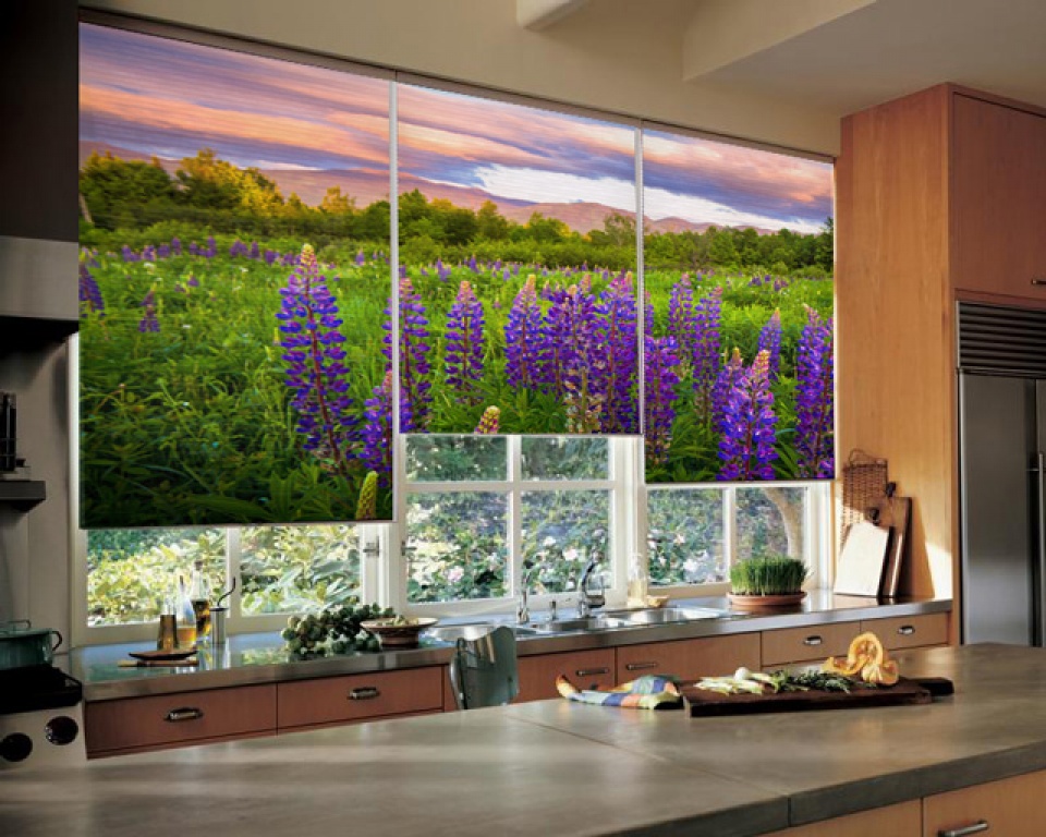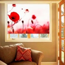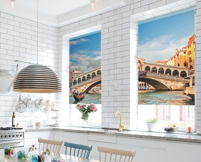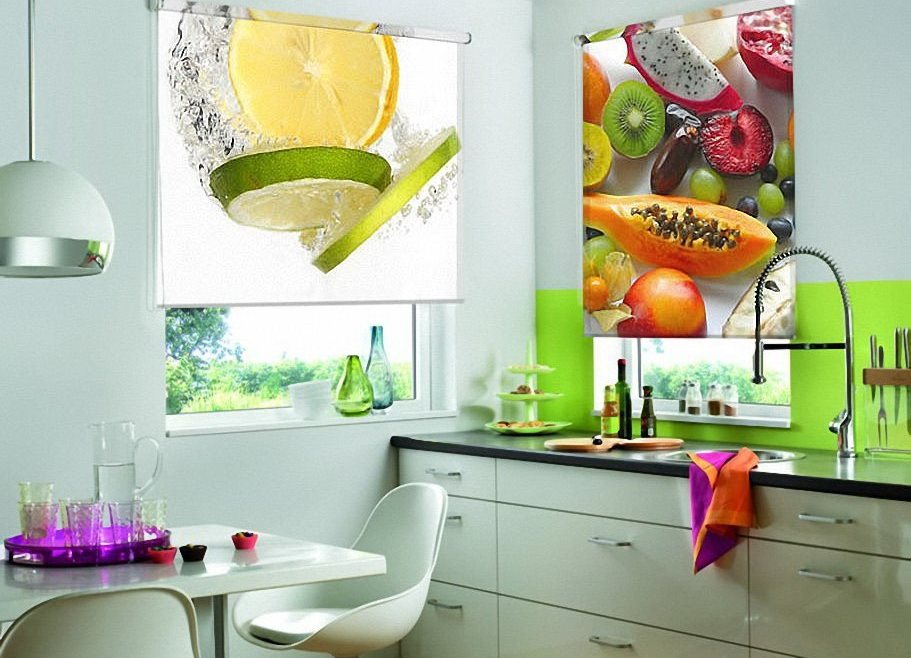 The kitchen will be the way images of vegetables, fruits, flowers or bright greens. Drawn animals, fish, cartoon characters will be suitable for the children's room. In the bedroom, curtains are usually used with picturesque landscapes, patterns, personal photos and flowers. Photo printing is an extraordinary, but convenient solution for creating decor.So that roller blinds with photo printing can be selected to suit various interior designs or make simple furnishings extraordinary.
