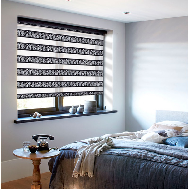 Modern curtains "Zebra" with photo printing - great interior decoration. They combine the functions of tulle and curtains and represent a canvas with alternating transparent and opaque stripes. Due to their design, they have light flow adjustment modes. If the same type of bands coincide with each other, then the room is filled with light. And if the dense bands overlap transparent - the light does not pass.