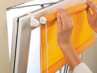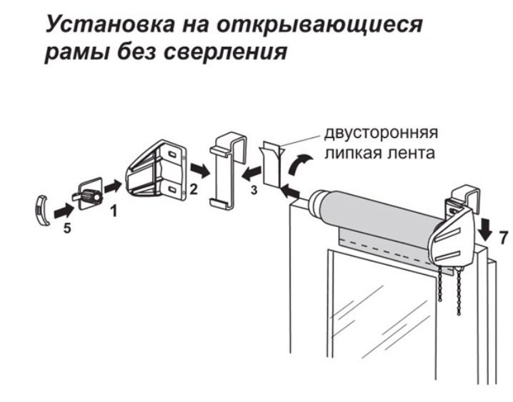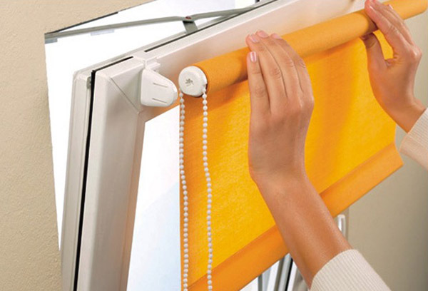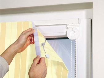 There are also special lightweight curtains in rolls with fastening with self-adhesive tape. Even a woman can cope with their installation, since for this it is not necessary to have the ability to drill and use a drill or screwdriver. This installation is suitable for window sashes of small width, deaf or opening.
