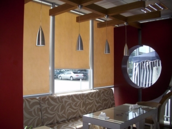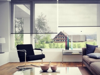 It is advisable to use the side guides so that the curtain does not move away from the glass during drafts. In the ceiling structure, sometimes there is an additional spring mechanism that automatically winds it into the drum.