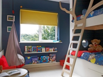 Installation of curtains outside the opening to the ceiling or to the wall hides space, therefore it is undesirable in the cramped conditions of small rooms.