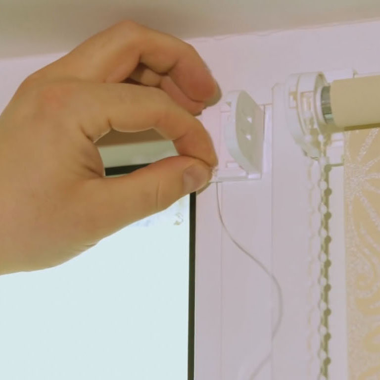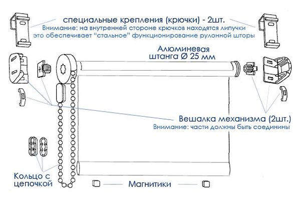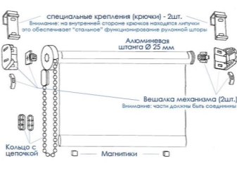 - Chain cord is the main element for adjusting curtains. It can be located on either side of the web. Fixing the curtains is permissible at any level from the window sill. On the roller fabric is wound inside out.