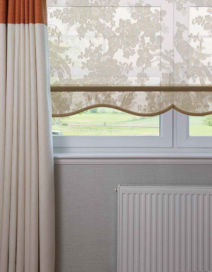 Between the glass and the curtain there is a kind of protective layer from the air, which prevents the entry of cold into the room during the winter period and preserves the coolness in the summer. Fabric curtains are perfectly combined in the interior with curtains, because it is not difficult to choose the right color to match the basic textile decoration of the window.