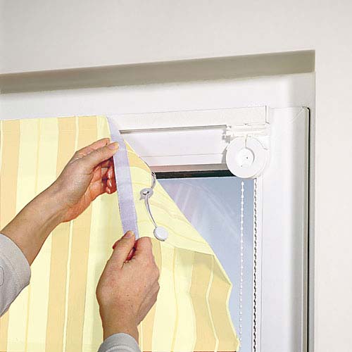 The tape is glued with a tenacious side directly onto the plastic frame or onto the eaves. For fixing the tape using glue or screws. The soft part with pile is located on the wrong side of the fabric roleta. For clutch they need to connect with each other.