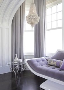- "Art Deco". In this style, the curtains in the above range will look great together with a dark brown color. The lilac shade is in harmony with gilding, and lavender - with silver.