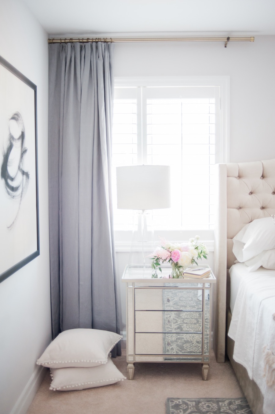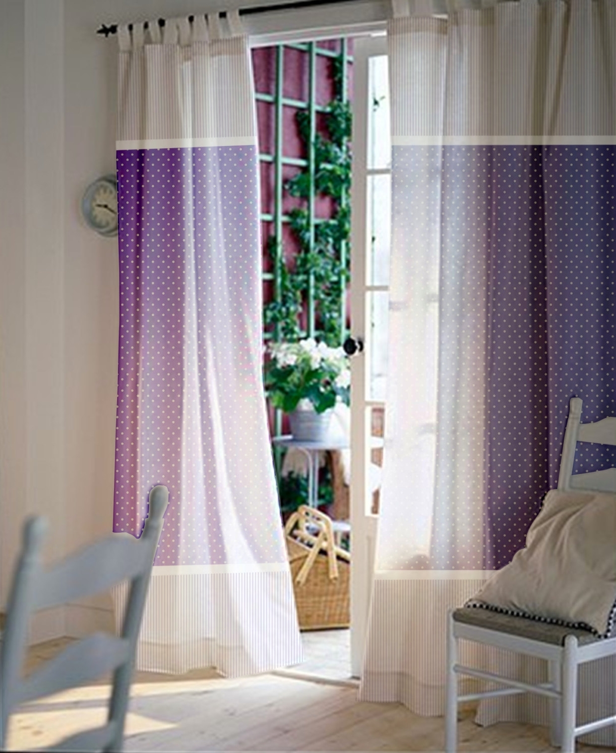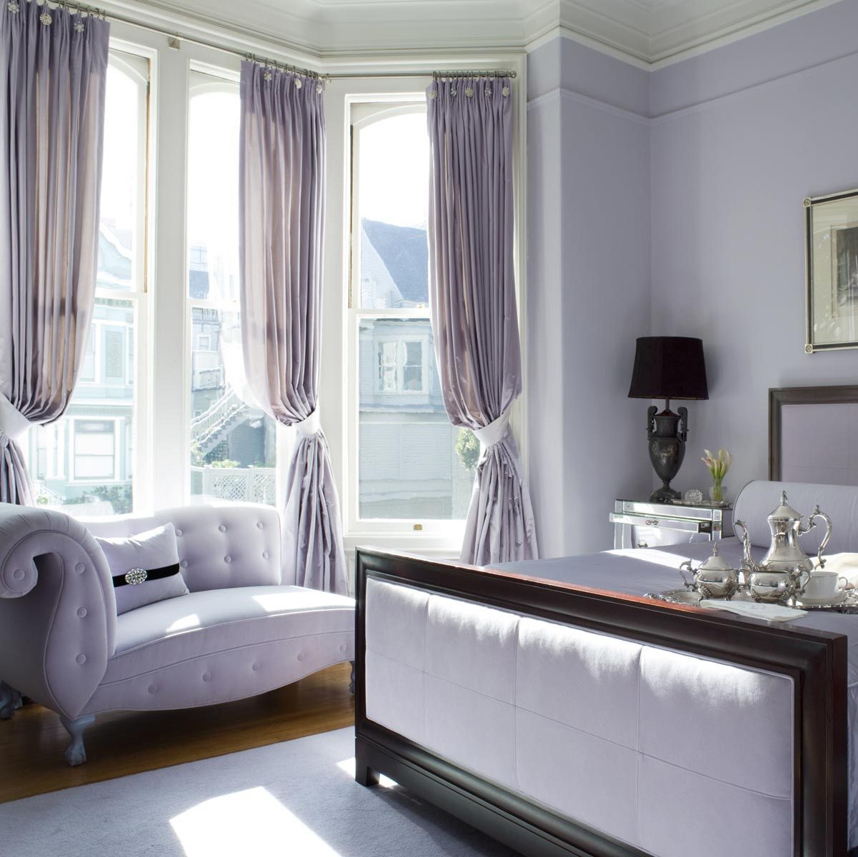 Lilac curtains in the bedroom