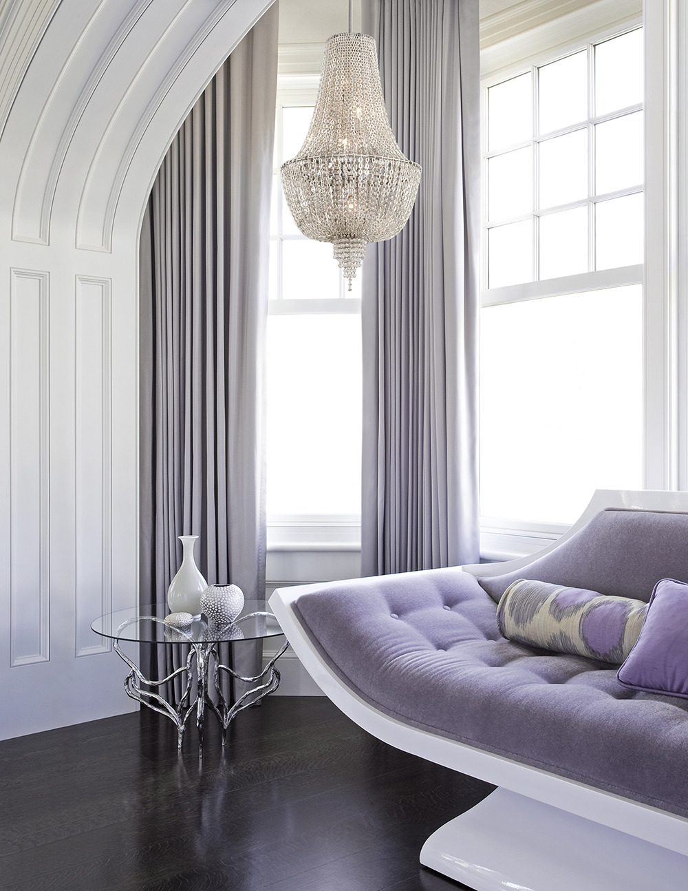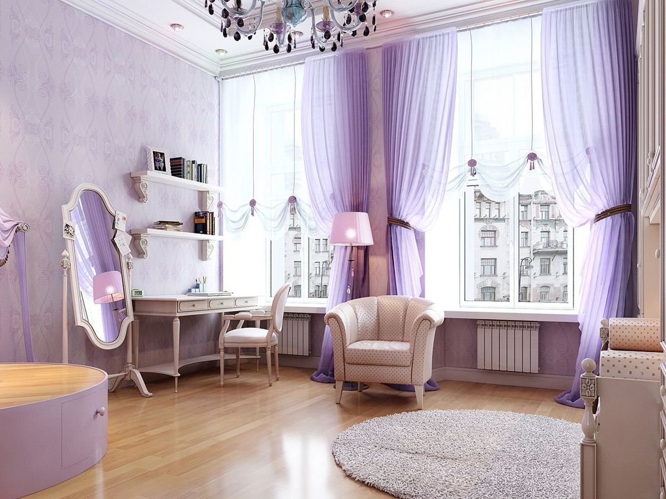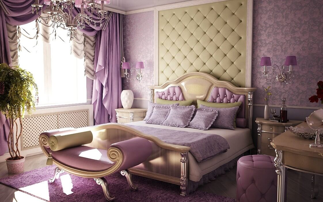 During the design of the room, special attention is removed to the selection of colors and shades. Especially popular in fashion, jewelry, and interiors enjoys purple color and all its shades. Thanks to a huge variety of tones, designers choose from thick and dark purple to delicate and weightless lavender.