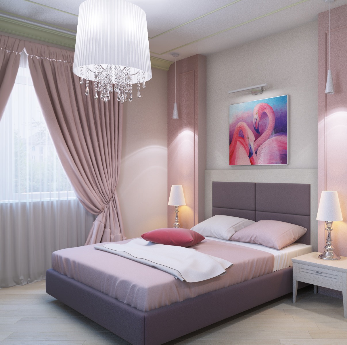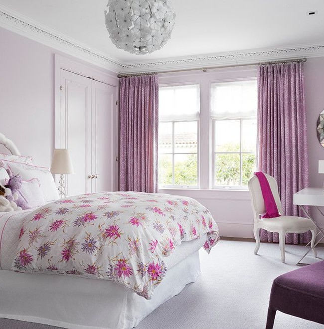 - Pink. This color is perfectly combined with various shades of purple. This blow will ideally go for decorating the bedroom of a girl or a young girl.