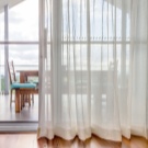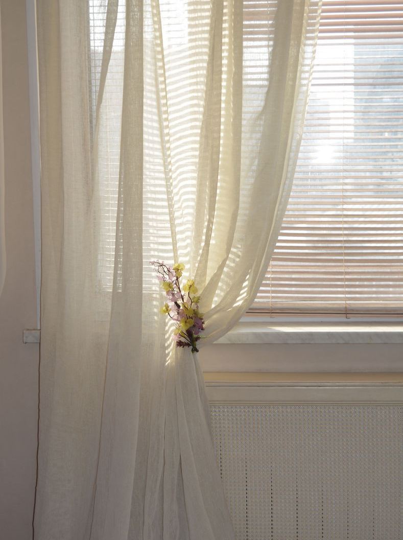 - natural air conditioning - the curtains are like an air conditioner, in winter time they will warm the room, and in hot weather they will create coolness, therefore linen tulle is very good as summer curtains;