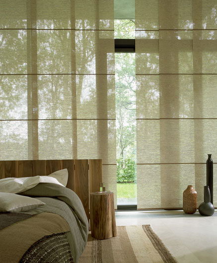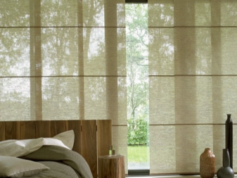 Flax is often used in Japanese curtains: several narrow canvases, different in color, cover the window. A colored flax with plant motifs in drawings suitable for oriental and colonial interior.
