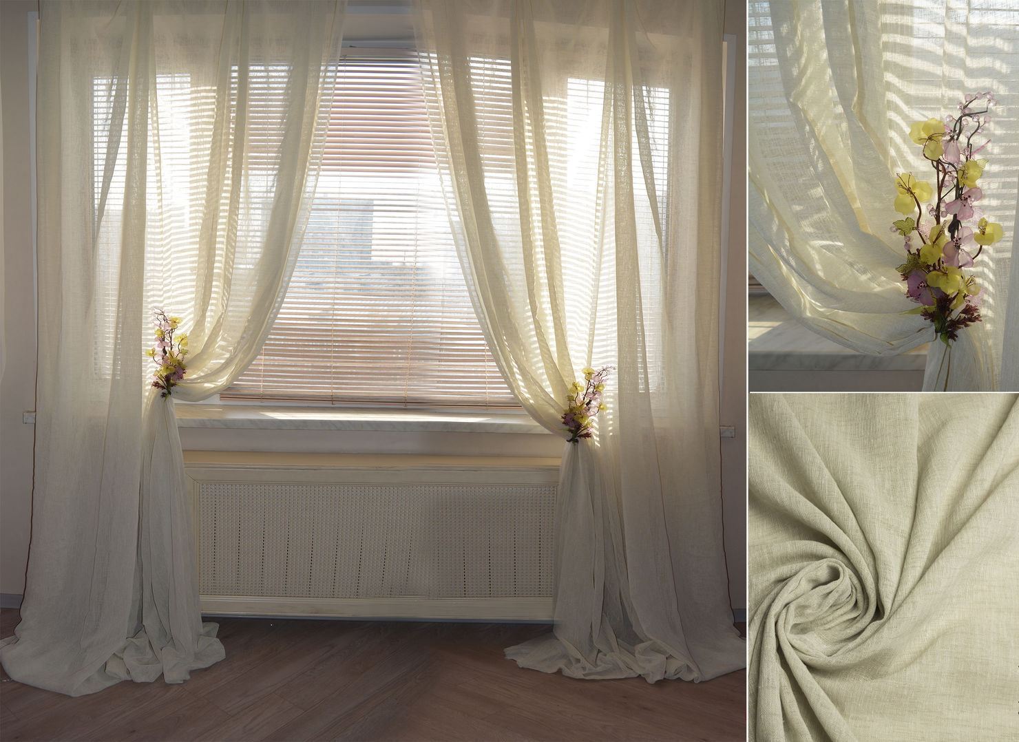 Linen curtain from tulle will easily and airy look in different designs of curtains. It can be French, Austrian, English curtains, as it drapes well and creates soft folds over the entire surface or only at the bottom of these products. Combinations with other styles: