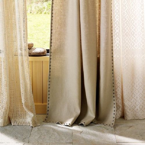 - Linen fabrics can be painted in any color. For example, blue tulle is appropriate in the Scandinavian interior, azure-colored curtains will decorate the Mediterranean interior, I’ll distinguish African tones in orange tones.