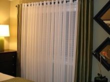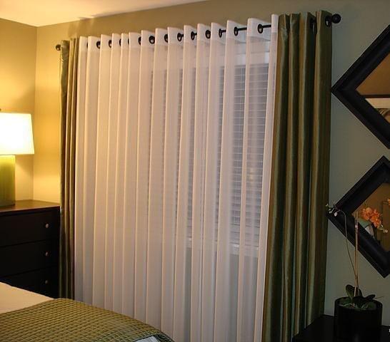 - A good example of the fact that such a long curtain without any frills fits perfectly into the bedroom. The white color corresponds to the overall brown-green color of the room, and the length of the tulle advantageously increases the size of the window itself. The round grommets look especially harmonious with both the tulle itself and the cornice.