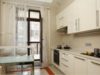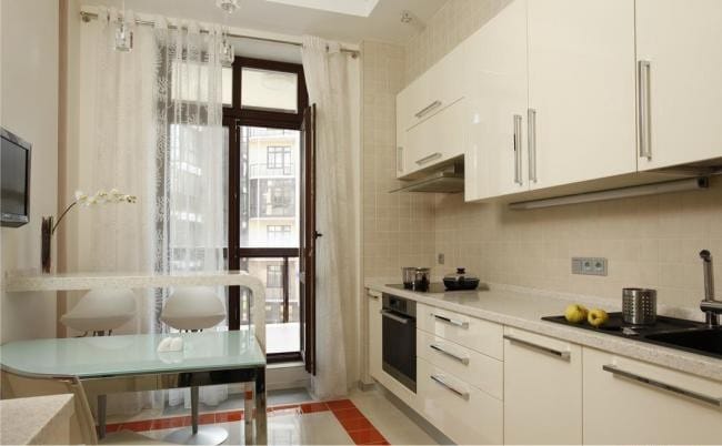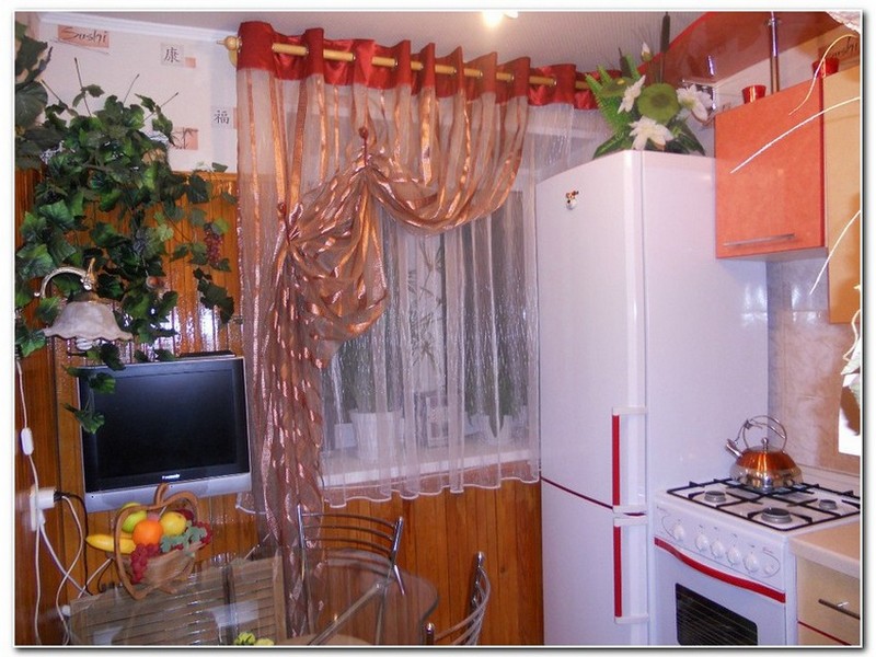 For a living room in a classic style, a curtain that is too short is absolutely not acceptable, but in the kitchen it will be useful.