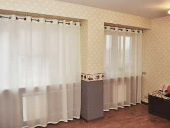 These three simple examples of using in the design of tulle on the grommet once again clearly prove the beauty, elegance, relevance and relevance of such window decoration in any room with any interior design.