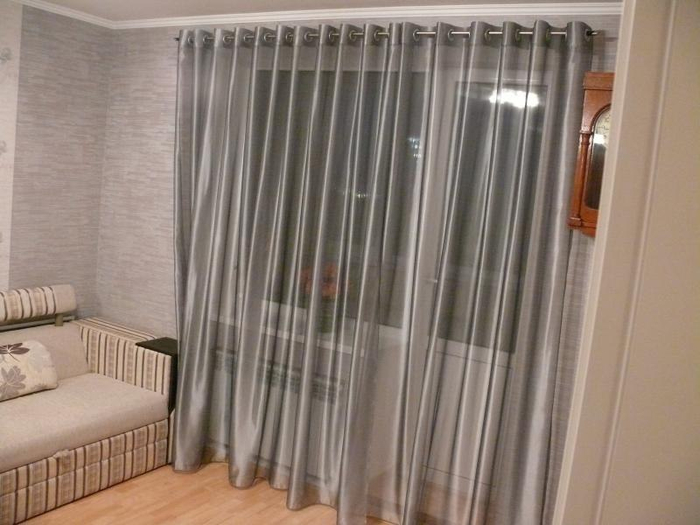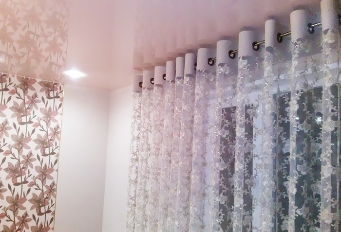 Now, when the perfect curtains of tulle on the grommet acquired, it remains only to hang them. The easiest way to do this is when the rings are already inserted into the curtains and all that is needed is to thread the grommets into the eaves, and then fix it with self-tapping screws near the ceiling. But so well the situation is not always the case.