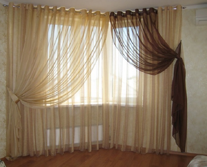 Tulle today is actively used for the design of window spaces of all shapes and sizes. In fact, this material is a very thin and almost transparent fabric. Its main feature is that it can be painted in absolutely any color.
