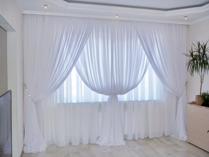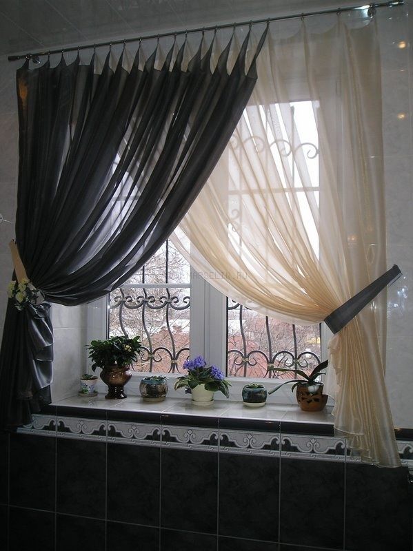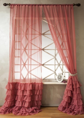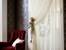 The use of lambrequin is also important when choosing a tulle-veil. Moreover, it can be made both from dense fabrics and from a veil, the color of which contrasts with the shade of the main curtain.