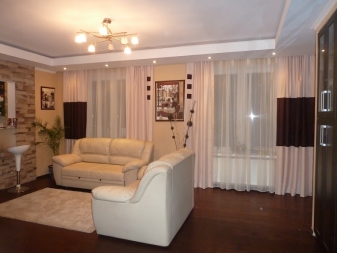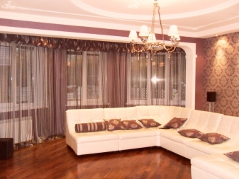 - For window decoration in the living room You can also choose a veil curtain. Tulle white or milky color will look perfect. You can also hang a curtain of this fabric in several layers, while the tones can be the same or be contrasted. And with the help of the original hinges, you can give the whole window decoration a unique look.