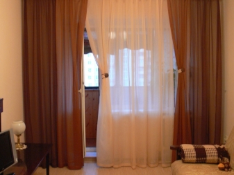 - French curtain. Veil is collected in symmetrical flounces. At the same time it is possible to change the height of the curtain. Flounces in this case should be maintained even with the maximum lowering of the canvas.