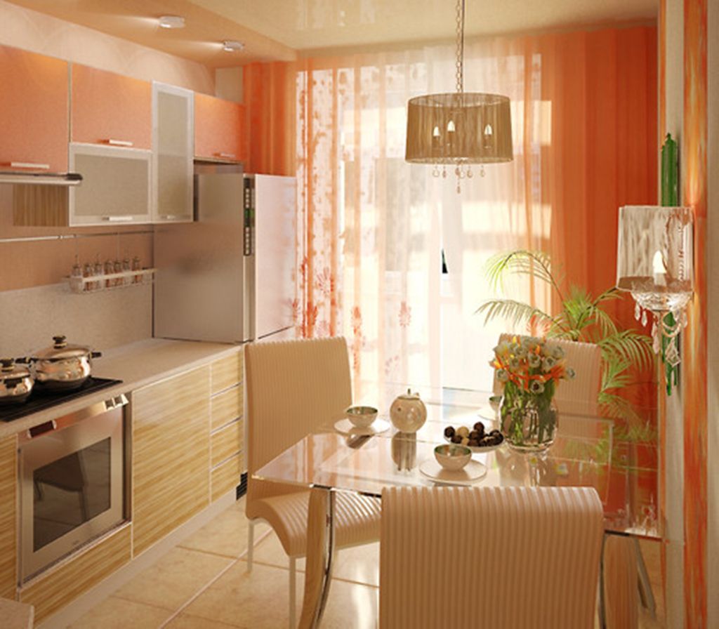 - On the kitchen voila curtain can also be applied. But when choosing a matter here it is necessary to give preference to synthetic fabrics. The length of the tulle can be either up to the floor, or just below the window sill. The colors here are suitable as monophonic, and with various ornaments. The shape of the pattern is preferred geometric or floral.