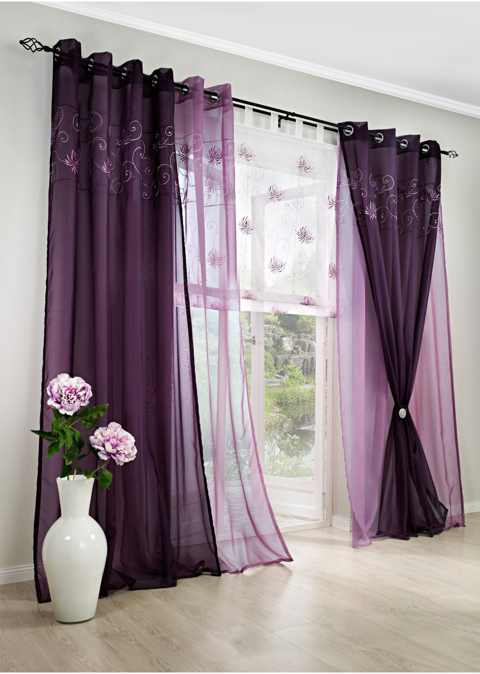 - A simple rectangular canvas hanging down in loose folds. On the window it can be one or several, made in one color or have several shades. Can be applied in one layer, two or more, creating volume on the window.